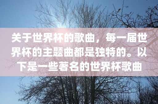 关于世界杯的歌曲,每一届世界杯的主题曲都是独特的。以下是一些著名的世界杯歌曲