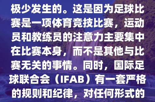 在世界杯足球比赛中,打架事件极为罕见。这是因为足球比赛的核心是竞技,运动员和教练员的关注点在比赛本身,而非其他杂事。国际足球联合会实施严格的规则和纪律,对暴力行为采取零容忍政策,并会进行严厉处罚。这使得足球比赛保持公正、公平的环境。