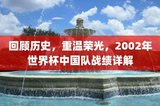 摘要:回顾历史,重温荣光,在2002年世界杯足球赛中,中国队表现出色。本次比赛,中国队经历了精彩的比赛历程,取得了不俗的战绩。本文将详细介绍中国队的比赛表现和成绩,让读者了解这支队伍在世界杯赛场上的风采。