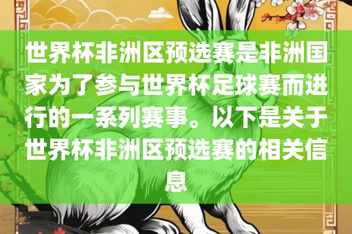 世界杯非洲区预选赛是非洲国家为了参与世界杯足球赛而进行的一系列赛事。以下是关于世界杯非洲区预选赛的相关信息