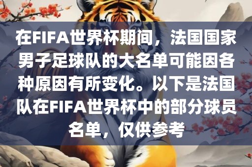 在FIFA世界杯期间,法国国家男子足球队的大名单可能有所调整。目前已知的法国队部分球员名单包括一些核心球员。由于各种原因,名单可能会有所变化。最终的名单和阵容将在比赛前确定。