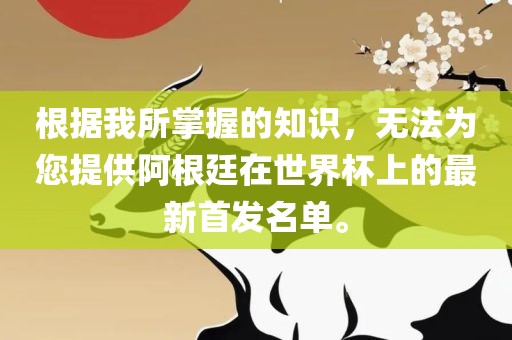 无法为您提供阿根廷在世界杯上的最新首发名单的具体信息。需关注官方消息和新闻报道以获取最新信息。因缺乏最新信息,无法提供阿根廷世界杯首发名单。