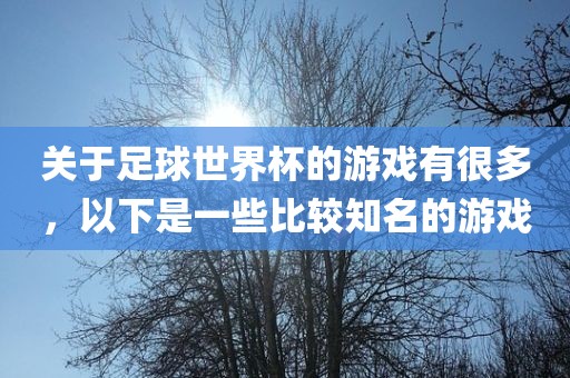 关于足球世界杯的游戏有很多,以下是一些比较知名的游戏